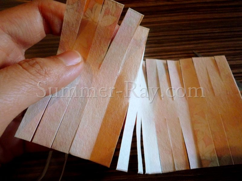 Using a sharp pair of scissors, cut one side of the paper (taking care to stop at your fingers) into 4 strips.