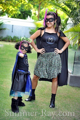 So, for her latest school Halloween Disco, my daughter wanted to be a Superhero. Since the sewing machine in our house is from another era (you have to paddle with your legs and spin the wheel with your hands to get it going), this is how I made a superhero outfit for her....without much sewing.